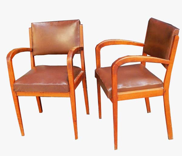 • Design: par de cadeiras de madeira com estofamento   Med.:90 x53 x47 cm.