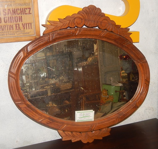 • Moldura em madeira com acabamento prateado e vidro curvo de época. (desgastes)30 x24 cm
