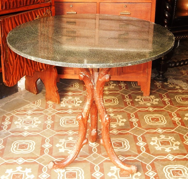 • Mesa tronquinho em ferro fundido . (desgastes / pequena falta na beira do tampo) med.  75 x diam78cm