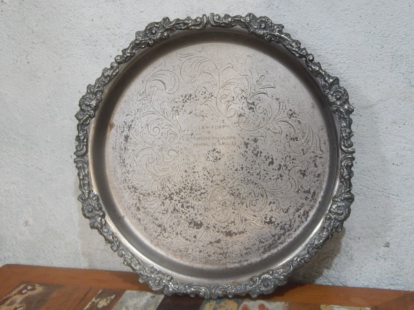 • Troféu/bandeja  diam 37 cm marcado CBN- FDAP Torneio Brasileiro Juvenil de Natação. (desgates)